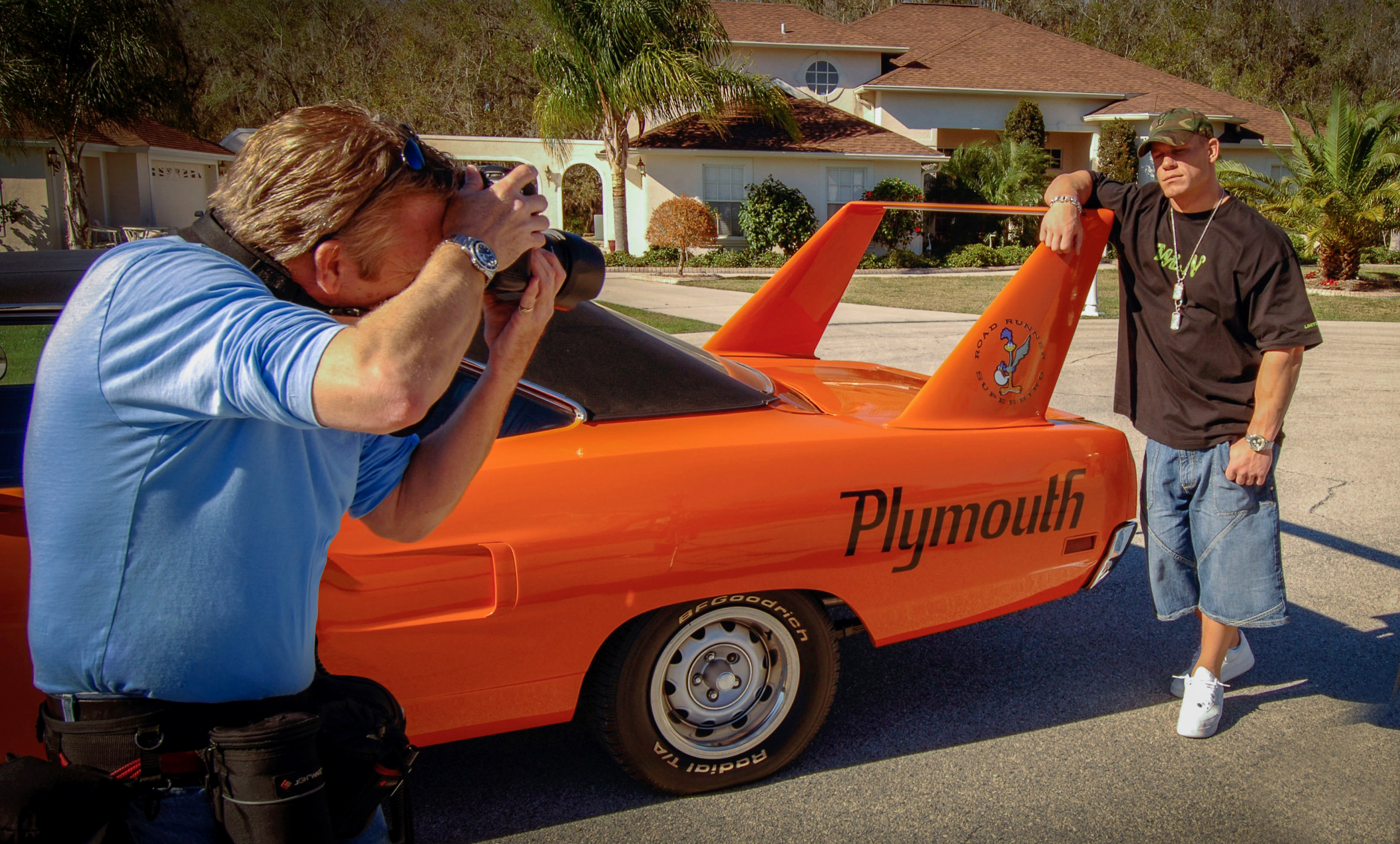 Did another shoot with duPont Registry’s Celebrity Car magazine today. I’ve been meeting some of the greatest sports celebrities working with this publication. Boxing Champion Antonio Tarver, Motorcross Champion Bubba Stewart, Buccaneer Cato June, Indy Car Champ Dan Wheldon, wrestler Dave Batista, Buccaneer Derrick Brooks and today it’s WWE Superstar John Cena.